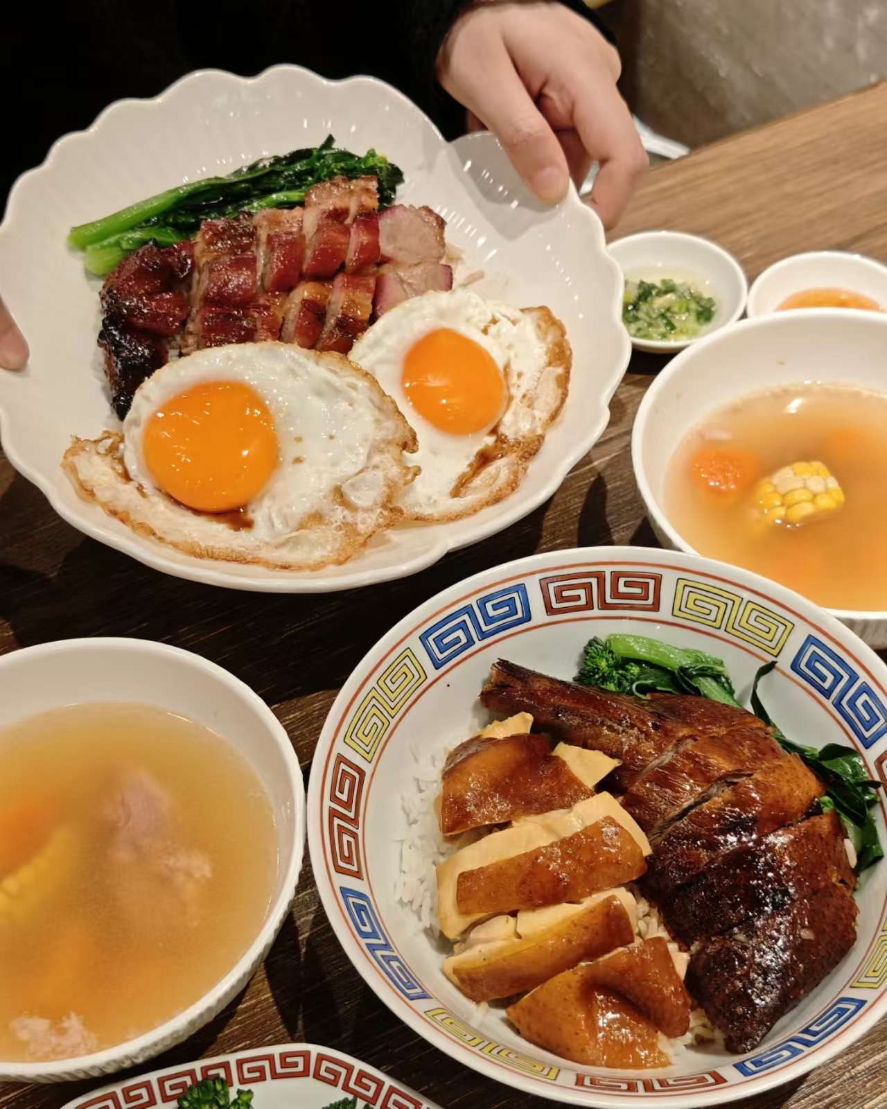 For lunch, enjoy roast duck, char siu, and crispy pork belly with rice or noodles. A true taste of Guangzhou! 🍚