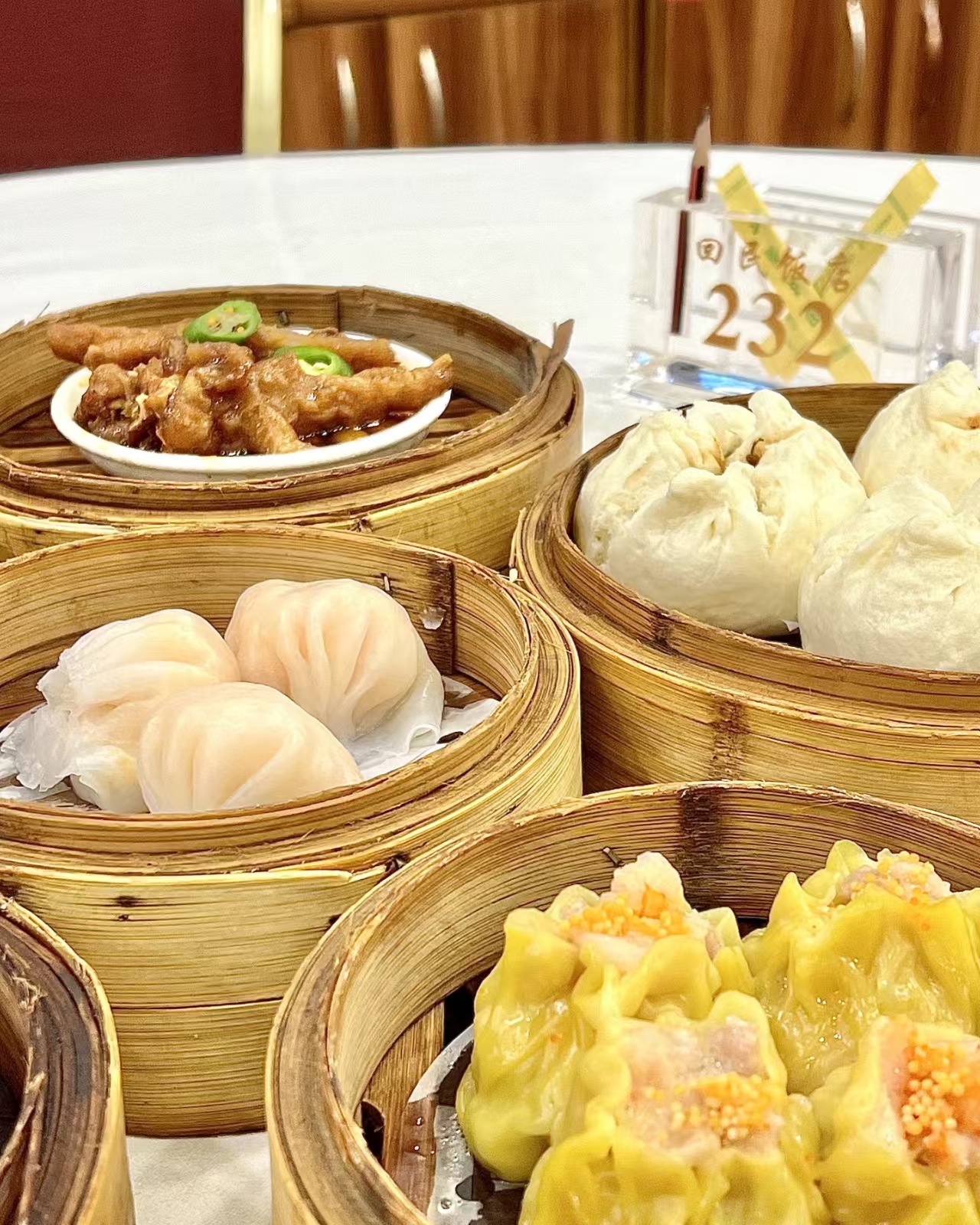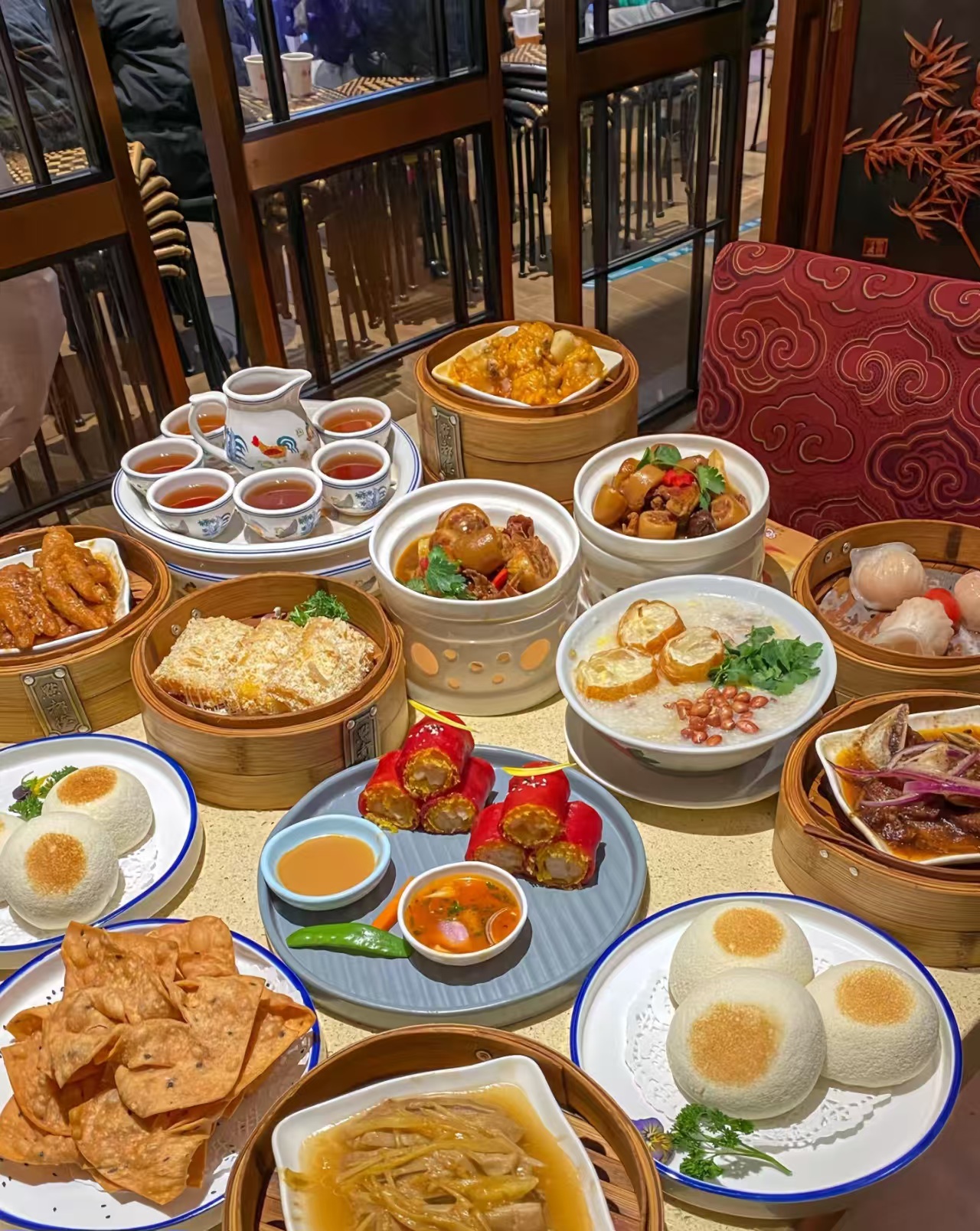 Start your day with classic dim sum, savoring har gow (shrimp dumplings), siu mai (pork dumplings), and char siu bao (BBQ pork buns), paired with a pot of jasmine tea 🍵.