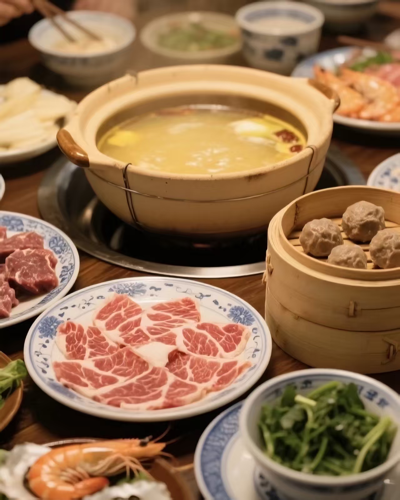Enjoy Cantonese hot pot for dinner, where you can cook fresh ingredients like fish, beef, tofu, and vegetables in a savory broth. A perfect social meal 🔥.