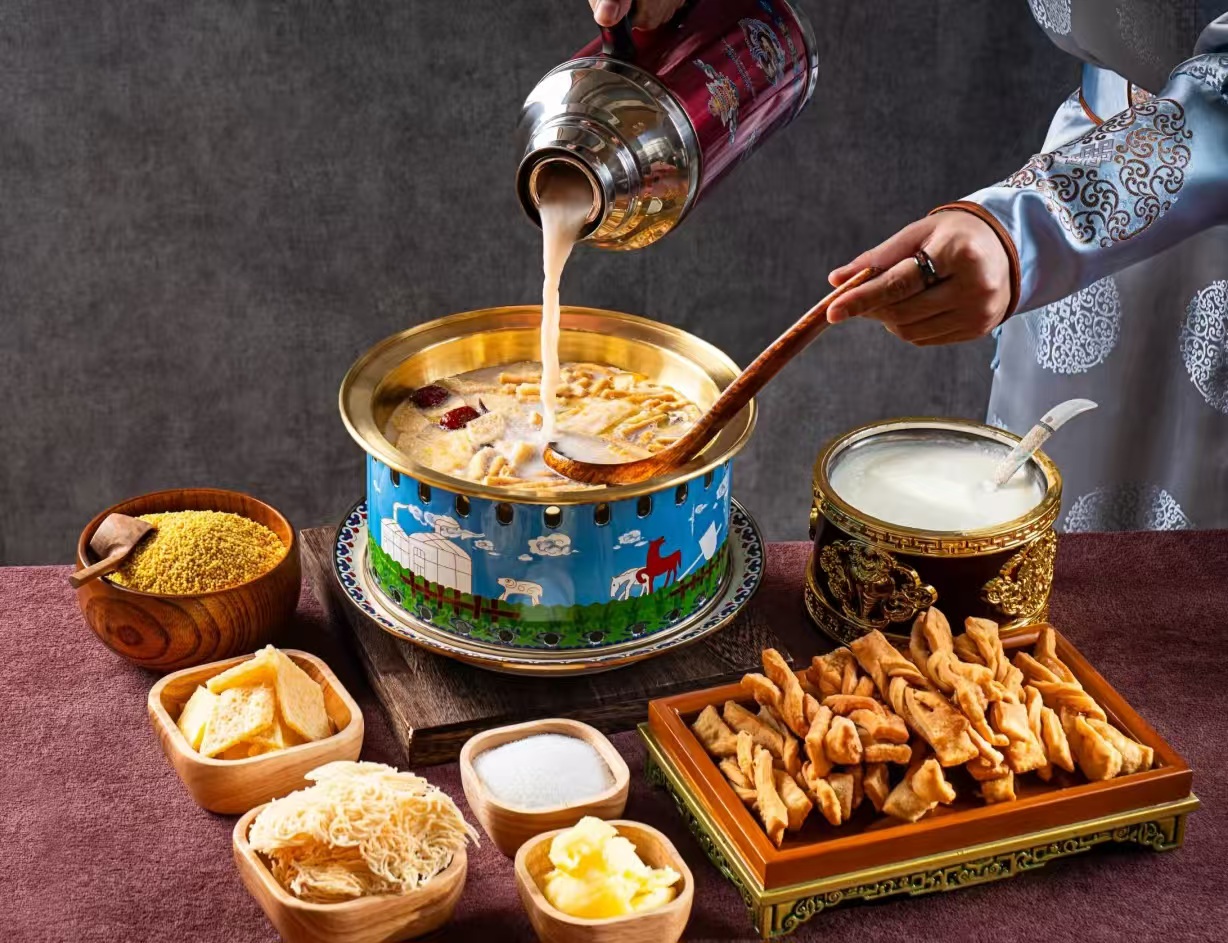 Inner Mongolian Milk Tea is a signature drink of the grasslands, made by brewing tea with cow’s or goat’s milk and a pinch of salt. It has a rich, creamy, slightly salty-sweet flavor, perfect for warming up in cold weather.